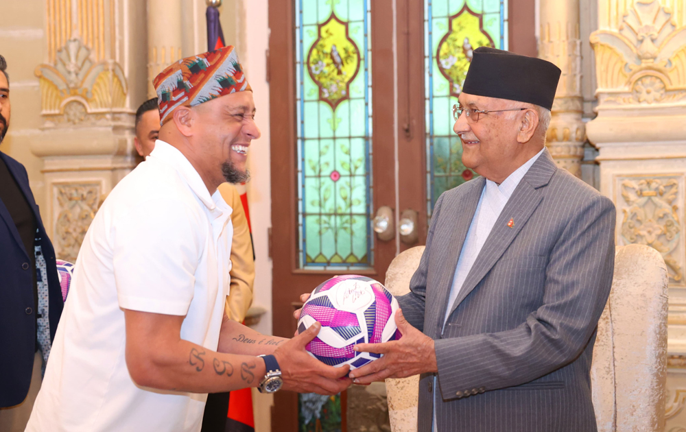 प्रधानमन्त्री केपी ओली र ब्राजिलका चर्चित फुटबलर रोबर्टो कार्लोसबीच आज भेटघाट भएको छ ।