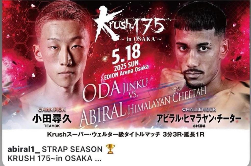 ‘हिमालयन चितुवा’ को नामले परिचित किक बक्सर अविरल घिमिरेले अब जापानका किक बक्सिङ ‘च्याम्पियन’ ओडा जिन्कुसँग ओसाका सहरमा प्रतिस्पर्धा गर्ने भएका छन् ।