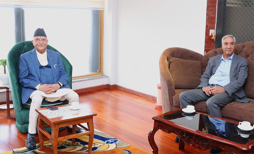 प्रधानमन्त्री केपी शर्मा ओली र नेपाली कांग्रेसका सभापति शेरबहादुर देउवाबीच आज बालुवाटारमा भेटवार्ता भएको छ ।