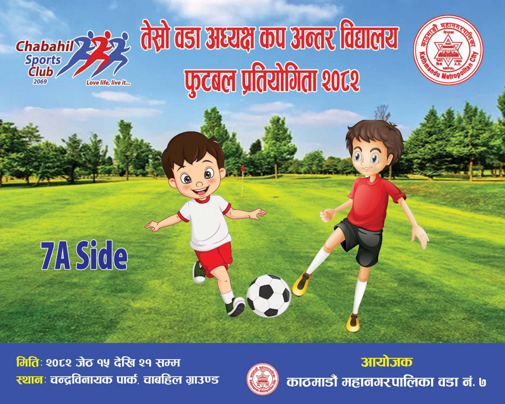 काठमाडौं महानगरपालिका वडा ७ को आयोजनामा तेस्रो वडाध्यक्ष कप अन्तरविद्यालय फुटबल प्रतियोगिता जेठ १५ गतेदेखि हुने भएको छ ।