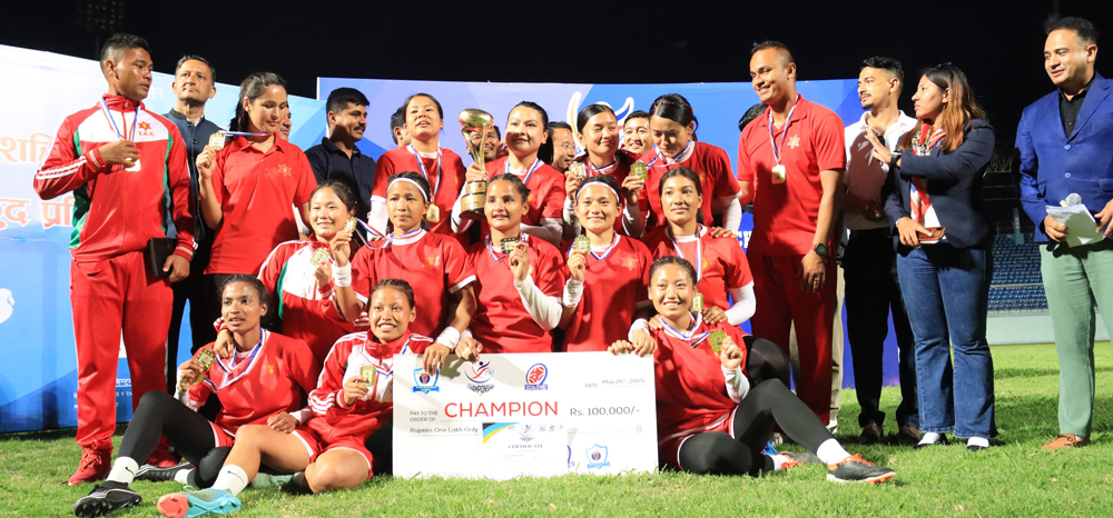 त्रिभुवन आर्मी क्लबले प्रथम सहिद स्मृति महिला राष्ट्रिय रग्बी सेभेन्सको उपाधि जितेको छ ।