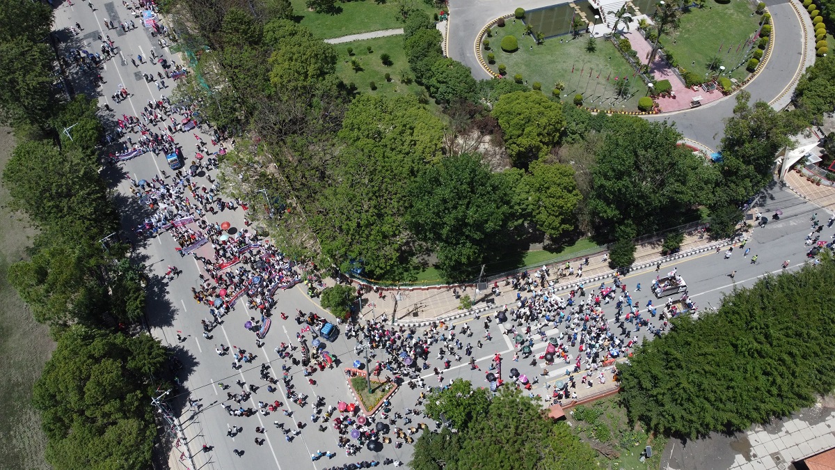 बिहान ११ बजेतिर विभिन्न स्थानबाट आ-आफ्नो भेषभूषा, सांस्कृतिक झाँकीसहित एमालेको र्याली सुरु भएको थियो । एमालेका नेता तथा कार्यकर्ताहरु सहभागि भएको र्याली नगरका विभिन्न भाग हुँदै भृकुटीमण्डपमा भेला भएर रत्नपार्कस्थित शान्तिबाटिका पुगेको थियो ।
