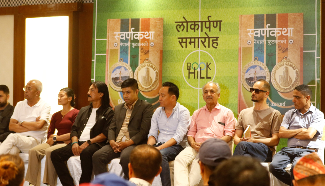 नेपाली फुटबलको इतिहास समेटिएको ‘स्वर्णकथा नेपाली फुटबलको’ पुस्तक सार्वजनिक गरिएको छ । खेल पत्रकार हिमेशरत्न बज्राचार्यले लेखेको उक्त पुस्तक आज आयोजित एक कार्यक्रममा नेपाली राष्ट्रिय फुटबल टोलीका पूर्वकप्तान राजुकाजी शाक्यले लोकार्पण गरे ।