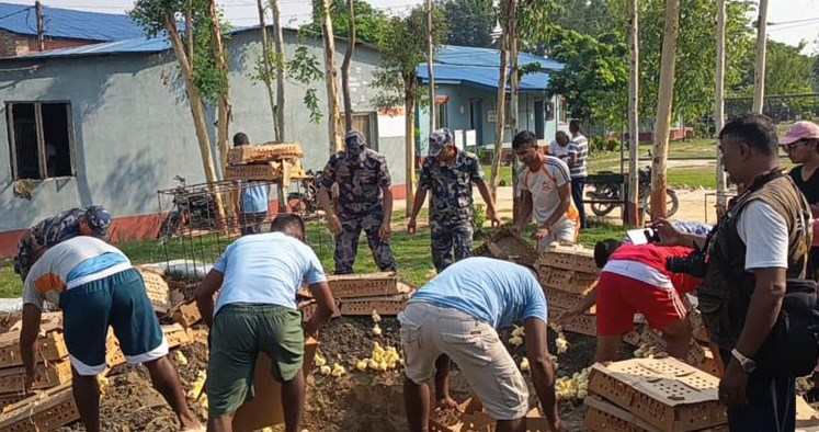 सशस्त्र प्रहरी बल नेपाल पर्साका सूचना अधिकारी देवेन्द्रबहादुर सिंहले बरामद भएको प्रतिबन्धित कुखुराको चल्लालाई क्वारेन्टाइन कार्यालयका प्रतिनिधि, स्थानीय जनप्रतिनिधि र सञ्चारकर्मीको उपस्थितिमा नष्ट गरिएको जानकारी दिए ।