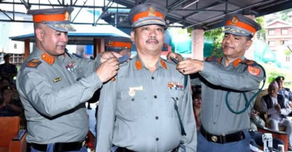 सशस्त्र प्रहरी महानिरीक्षक राजु अर्यालले सशस्त्र प्रहरी अतिरिक्त महानिरीक्षक पदमा पदोन्नति भएका गणेशबहादुर ठाडा मगरलाई दर्ज्यानी चिह्न प्रदान गरे । सशस्त्र प्रहरी बलको मुख्यालय हल्चोकमा आज आयोजित कार्यक्रममा उनले दर्ज्यानी चिह्न प्रदान गरेका हुन्।