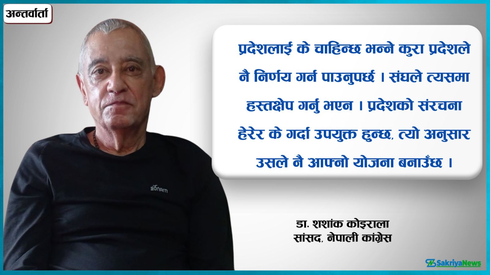 हामीले राष्ट्रलाई विकेन्द्रीकरण गरेका छौँ । सात प्रदेश बनाएका छौँ । तर, शासन अहिले पनि केन्द्रीकृत नै छ । व्यवहारिक रूपमा विकेन्द्रीकरण गरेनौँ । प्रदेशलाई के चाहिन्छ भन्ने कुरा प्रदेशले नै निर्णय गर्न पाउनुपर्छ । संघले त्यसमा हस्तक्षेप गर्नु भएन । प्रदेशको संरचना हेरेर के गर्दा उपयुक्त हुन्छ, त्यो अनुसार उसले नै आफ्नो योजना बनाउँछ । तर, यहाँ संघबाट प्रदेशमाथि हस्तक्षेप गरिएको छ । यो राम्रो होइन । कि त हामी संघीयतामा जान हुन्थेन । पहिलो कुरा, संघीयतामा आर्थिक भार पर्यो भन्ने गरिएको छ । आर्थिक भार हामी आफैँले गराएका छौँ । विकेन्द्रीकृत गरेपछि उनीहरूलाई खर्च पनि दिनुपर्छ । सबै केन्द्रले गर्ने होइन । प्रदेशलाई थाहा छ, कहाँ-कहाँ खर्च गर्नुपर्छ । त्यो अधिकार पनि प्रदेशलाई नै दिनुपर्छ । दोस्रो कुरा, समानुपातिक प्रतिनिधित्व राम्रो हो । तर त्यो प्रतिनिधिसभामा होइन, राष्ट्रिय सभामा हुनपर्ने हो । प्रतिनिधिसभामा निर्वाचित प्रतिनिधि मात्रै बस्नुपर्छ । मेरो दृष्टिकोणमा यो गलत भएको छ । तेस्रो कुरा, इन्टरनेसनल अफियर्स बीपी कोइरालाले सुरु गरेको हो । उहाँले भारत र चीनसँग समदूरी राख्नुपर्छ भन्नुभएको थियो । यद्यपि, भौगोलिक दृष्टिकोणले निकटता भारतसँग छ । तर सन्तुलित सम्बन्ध राख्नुपर्छ ।