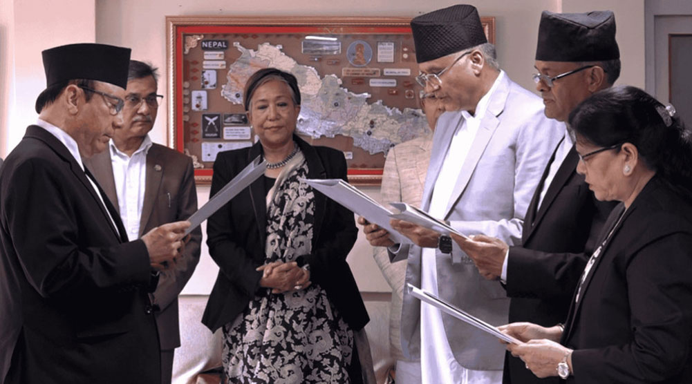 सर्वोच्च अदालतमा नवनियुक्त तीन न्यायाधीशले मंगलबार पद तथा गोपनीयताको शपथ लिएका छन्।