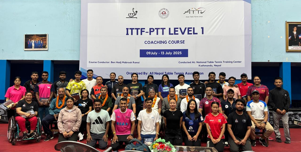 अखिल नेपाल टेबलटेनिस संघको आयोजनामा लेभल वान कोचिङ कोर्स लैनचौरस्थित राष्ट्रिय टेबलटेनिस प्रशिक्षण केन्द्रमा सुरु भएको छ ।