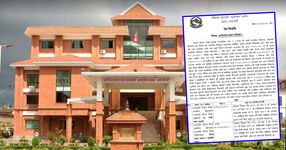 तर, दुई पक्षबीच भएको सम्झौताविपरीत हुँदै नभएको कामको झुटा र गलत भौतिक कार्य प्रगतिसम्बन्धी प्राविधिक मूल्यांकन गराई विद्यालयले भुक्तानीका लागि माग गरेकामा जिल्ला शिक्षा कार्यालयले पटकपटक गरी २४ लाख रुपैयाँ भुक्तानी गरेको पाइएको अख्तियारको आरोपपत्रमा उल्लेख छ ।