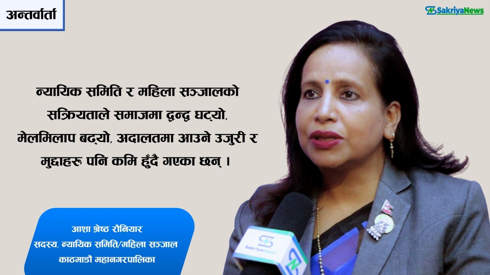 काठमाडौं महानगरपालिका वडा नम्बर ११ का (जनप्रतिनिधि) समेत रहेकी सदस्य रौनियारले महिला सञ्जाल र न्यायिक समितिको काम,कारबाही र प्रभावकारिताको विषयमा चासो व्यक्त गरेकी छिन् । यसै सन्दर्भमा प्रस्तुत छ- सक्रिय न्युजका लागि रौनियारसँग गरिएको कुराकानीको सम्पादित अंश :