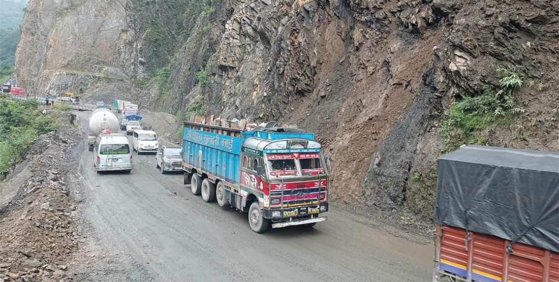 पहिरोका कारण एकतर्फी मात्र रहेको नारायणगढ–मुग्लिन सडक दुईतर्फी सञ्चालनमा आएको छ ।