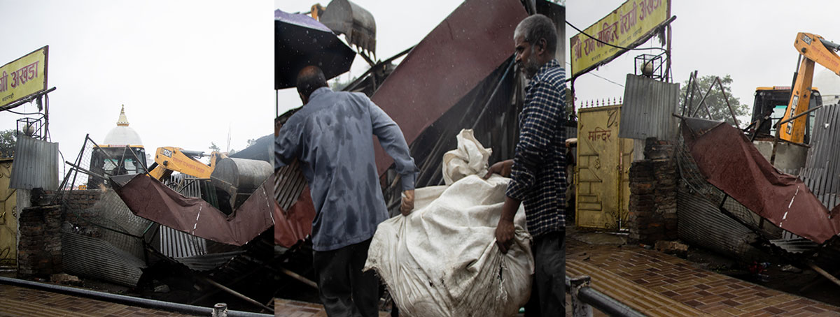 काठमाडौं महानगरपालिकाले थापाथलीस्थित बागमती किनारमा रहेका अनधिकृत संरचना हटाउन सुरु गरेको छ। यसपटक भने महानगरले थापाथलीस्थित राम मन्दिर परिसर र वरपरका क्षेत्रमा निर्माण भएका अस्थायी टहरासहितका अवैध संरचना हटाएको हो।