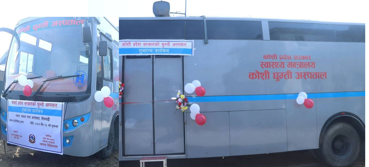 कोसी प्रदेश सरकारका मुख्यमन्त्री हिक्मत कुमार कार्कीले घुम्ती अस्पतालको शुभाम्भ गर्दै ठुलो बसभित्र अत्याधुनिक मेडिकल उपकरण जडान गरी यो सेवा सञ्चालनमा ल्याइएको जानकारी दिए । मुख्यमन्त्री कार्कीले यो सेवालाई गाउँ गाउँसम्म विस्तार गर्ने बताए ।