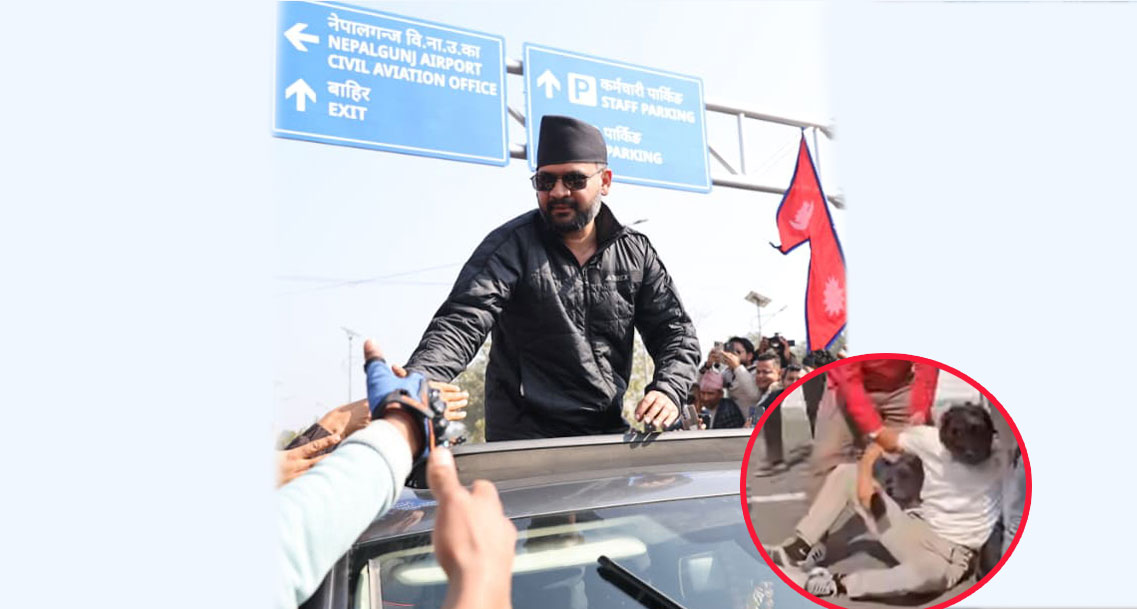 बालेन नेपालगञ्ज जाने क्रममा उनका समर्थकहरू विमानस्थल पुगेका थिए । समर्थकको गाडीमा चढेका केही व्यक्ति गाडीको पछाडिको ढालाबाट खसेका हुन् ।विमानस्थलभित्रैको सडक भएकाले गाडी स्पिडमा नभएको र खस्नेहरु सामान्य घाइते भएको प्रहरीको भनाइ छ ।
