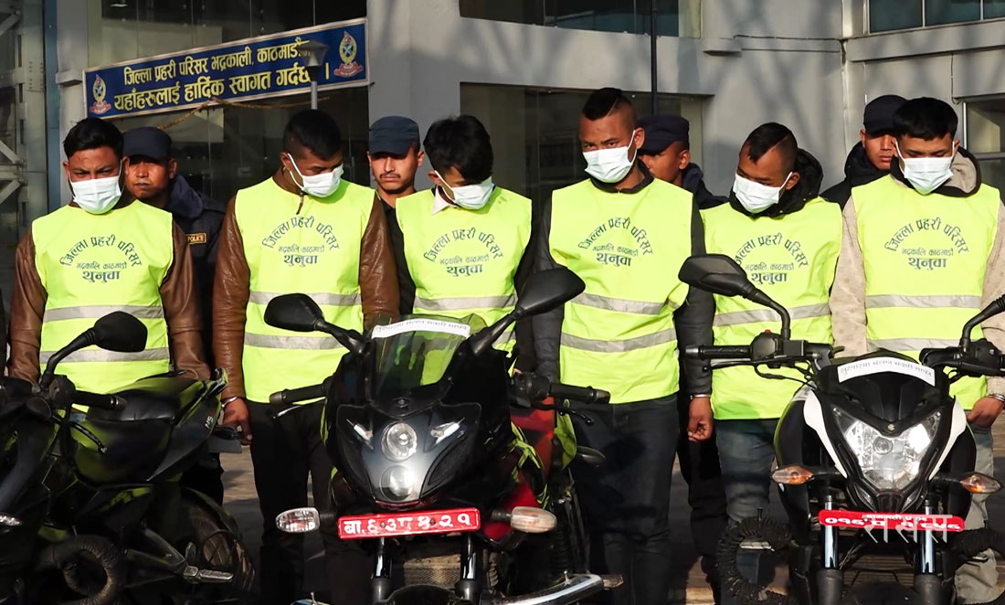 नेपाल प्रहरीले रातको समयमा गरगहना र नगद लुटपाट गर्ने गिरोहलाई पक्राउ गरेको छ । जिल्ला प्रहरी परिसर काठमाडौंले बिहीबार पत्रकार सम्मेलन गर्दै विगत ३ महिनादेखि रातको समयमा मोटरसाइकलमा चढेर लुटपाट गर्ने गिरोहलाई पक्राउ गरिएको जनाएको हो ।