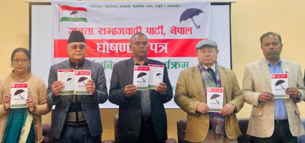 उपेन्द्र यादव नेतृत्वको जनता समाजवादी पार्टी (जसपा) नेपालले चुनावी घोषणापत्र सार्वजनिक गरेको छ । शुक्रबार काठमाडौंमा आयोजित कार्यक्रममा जसपा नेपालले चुनावी घोषणापत्र सार्वजनिक गरेको हो ।