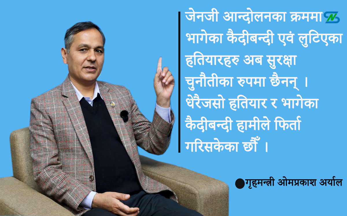 प्रश्नः मानिसहरु अहिले पनि सुरक्षाको कुरा गर्दा गत भदौको जेनजी आन्दोलनका क्रममा भागेका कैदीबन्दी र लुटिएका हतियारहरु सुरक्षाका चुनौती छन् भन्ने गरेका छन् । के त्यस्तो अवस्था हो र ?