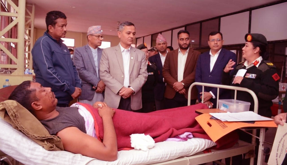 गृहमन्त्रीले घाइतेको शीघ्र स्वास्थ्यलाभको कामना गर्दै उपचारमा कुनै कमी नआउने आश्वासन दिए। भीमबहादुर मानन्धर, केदारकुमार रोका, दुर्गा कार्की, कृष्णप्रसाद घिमिरे, सविना खड्का र समरबहादुर मानन्धर मेडिकल वार्डमा उपचाररत छन्।