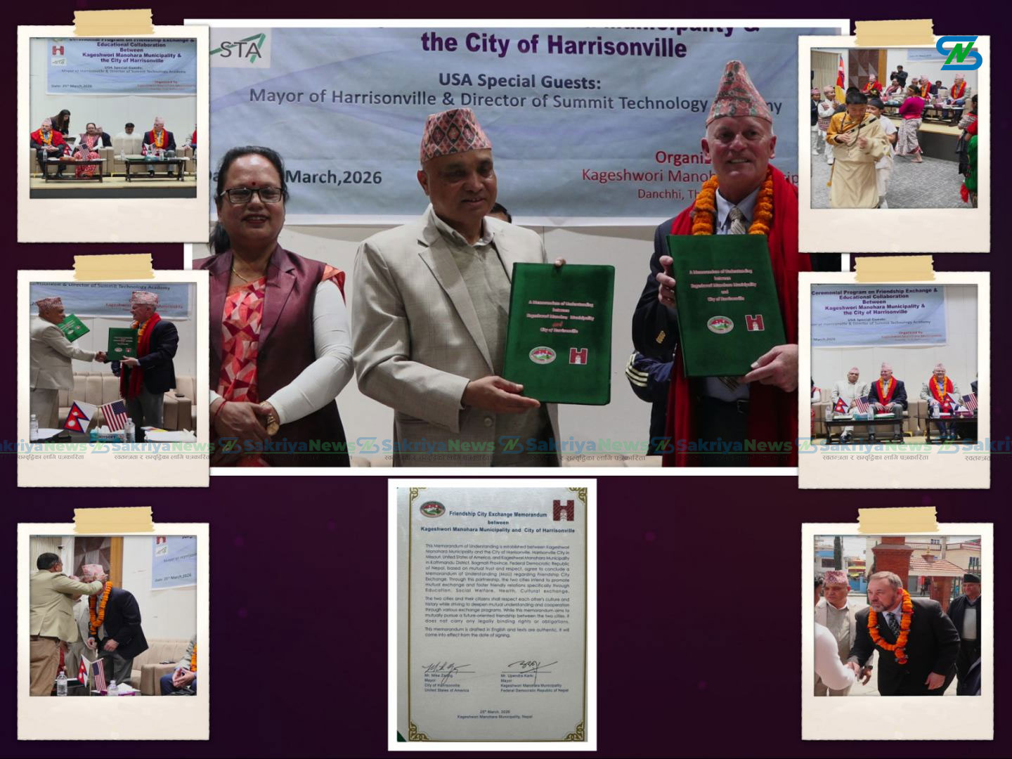 कागेश्वरी मनोहरा नगरपालिका र अमेरिकाको ह्यारिसनभिल सिटीबीच भगिनी सम्बन्ध कायम गर्ने समझदारीपत्रमा हस्ताक्षर भएको छ। नगरपालिका परिसरमा आज (बुधबार) आयोजित एक विशेष कार्यक्रमकाबीच कागेश्वरी मनोहराको तर्फबाट मेयर उपेन्द्र कार्की र ह्यारिसनभिल सिटीकोतर्फबाट मेयर माइक जारिङले उक्त समझदारीपत्रमा हस्ताक्षर गरे ।