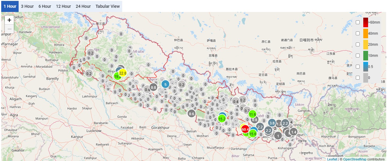 आगामी २४ घण्टामा कोशी, बागमती, गण्डकी, लुम्बिनी, कर्णाली र सुदुरपश्चिम प्रदेशका केही स्थान तथा बाँकी प्रदेशकाका केही भागमा मेघगर्जन र चट्याङसहित हल्कादेखि मध्यम वर्षाको सम्भावना छ । कोशी, बागमती, गण्डकी, कर्णाली र सुदूरपश्चिम प्रदेशका एक–दुई स्थानमा भारी वर्षाका साथै मधेस र कोशी प्रदेशको तराईका केही स्थानमा हुरीको पनि सम्भावना रहेकाले ती क्षेत्रमा हुन सक्ने गेग्रान बहाव, बाढी, पहिरोबाट बच्न विभागले आग्रह गरेको छ ।