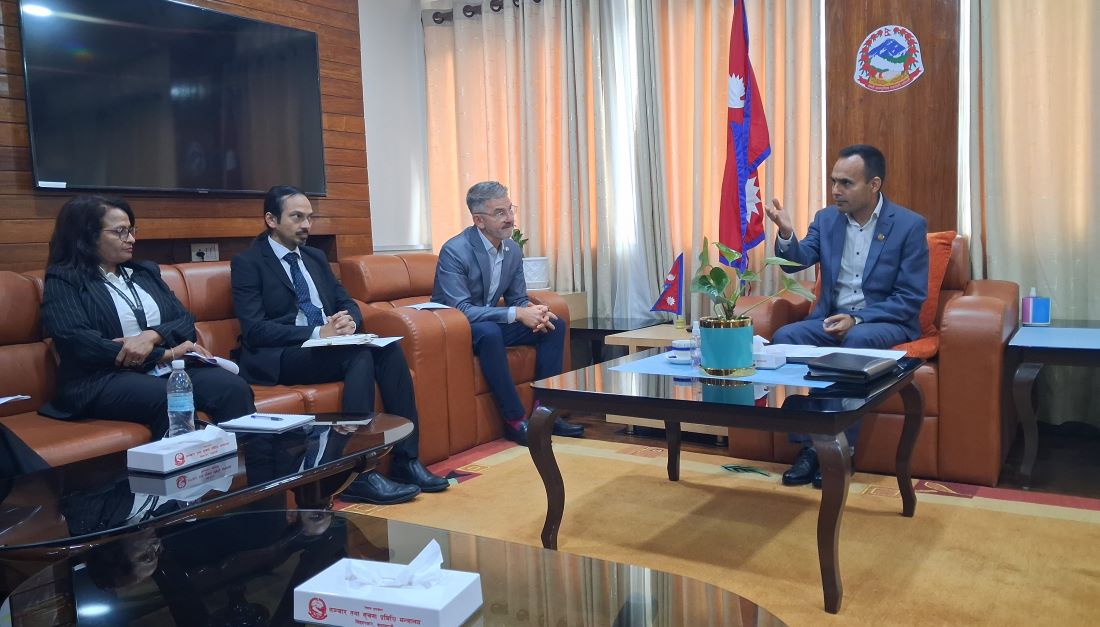 सञ्चार तथा सूचना प्रविधिमन्त्री डा. विक्रम तिमिल्सिनासँग नेपालका लागि विश्व बैंकका देशीय निर्देशक डेभिड सिस्लेन नेतृत्वको प्रतिनिधिमण्डलले उनको कार्यकक्षमा भेट गरेका छन् ।