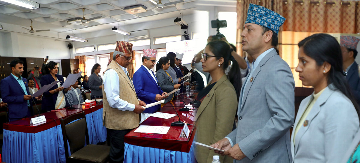 प्रतिनिधिसभाका दश र दुई संयुक्त समितिका नवनिर्वाचित सभापतिहरूले आज पद तथा गोपनीयताको सपथ लिएका छन् । सिंहदरबारस्थित सङ्घीय संसद सचिवालयमा आयोजित कार्यक्रममा प्रतिनिधिसभाका सभामुख डोलप्रसाद (डिपी) अर्यालसमक्ष उनीहरूले शपथ लिएका हुन् ।
