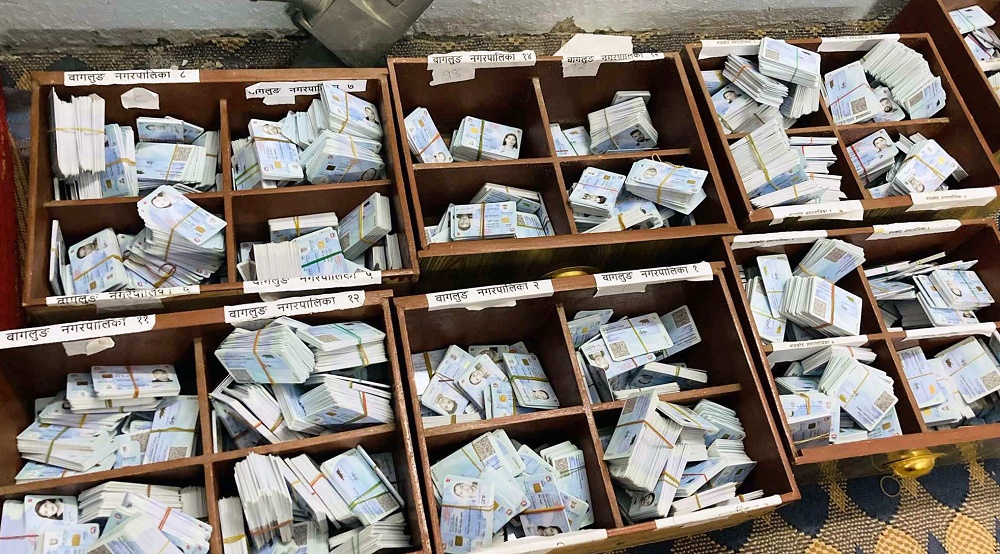 अहिले वडा तहमा राष्ट्रिय परिचयपत्रका लागि विवरण सङ्कलनको काम भइरहेको छ । जिल्ला प्रशासनमा अहिलेसम्म २८ हजार आठ सय ८५ राष्ट्रिय परिचयपत्र तयार भएर आइसकेको शाखा अधिकृत उपाध्यायले बताए । तीमध्ये जम्मा १३ हजार ४७ परिचयपत्र मात्र सेवाग्राहीले लगेका छन् भने १५ हजार आठ सय ३८ परिचयपत्र प्रशासनमै रहेको उनले बताए ।
