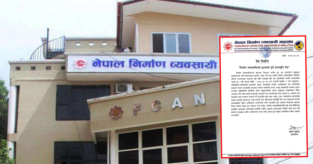 निर्माण व्यवसायीहरूमाथि हुने यस किसिमका दण्डनीय अपराधमा संलग्नलाई कारबाही नगरिए देशभरका निर्माण कार्य ठप्प पारी पेसागत सुरक्षाका लागि महासंघ आन्दोलनमा उत्रन बाध्य हुने विज्ञप्तिमा उल्लेख छ ।