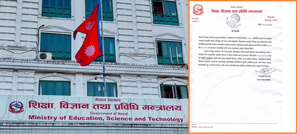 मन्त्रालयका प्रवक्ता एवं सहसचिव शिवकुमार सापकोटाले आज (मंगलबार) विज्ञप्ति जारी गर्दै आन्दोलनरत सबै शिक्षक कर्मचारीको प्रतिनिधित्व हुने गरी महासङ्घलाई वार्ता र संवादका लागि आह्वान गरेका हुन् । वार्ताको समय भने आपसी सल्लाहअनुसार तय गरिने विज्ञप्तिमा उल्लेख छ ।