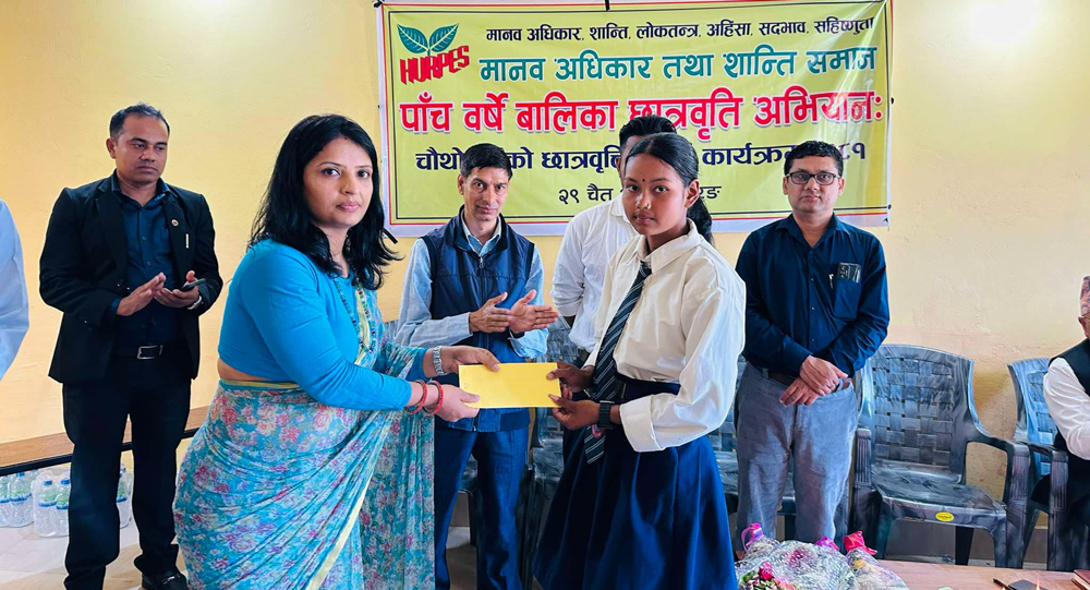 ‘छोरी पढाऔं : गरिमा बढाऔँ’ भन्ने आह्वानसहित मानवअधिकार तथा शान्ति समाजले प्रारम्भ गरेको पाँचवर्षे बालिका छात्रवृत्ति अभियान अन्तर्गत ३३ जना विपन्न दलित समुदायका बालिकालाई चौथो वर्षको छात्रवृत्ति प्रदान गरिएको छ ।