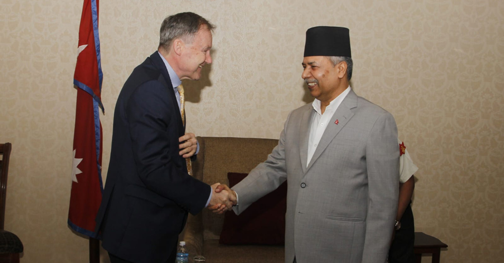 उपराष्ट्रपतिको कार्यालयमा सोमबार भएको भेटमा शुभकामना आदानप्रदानपश्चात द्विपक्षी सम्बन्धका विषयमा संवाद भएको उपराष्ट्रपतिको सचिवालयले जनाएको छ ।