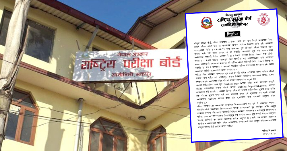 परीक्षाका सन्दर्भमा अनधिकृत तवरले विभिन्न सामाजिक सञ्जालमा बोर्डको लोगो प्रयोग गरी प्रचार भएकामा आपत्ति प्रकट गर्दै भ्रामक सूचनाका पछाडि नलाग्न आग्रह गरिएको छ । यसअघि बोर्डले कक्षा १२ को परीक्षा यही वैशाख ११ गतेदेखि गर्ने समयतालिका निर्धारण गरेको थियो । नेपाल शिक्षक महासंघ आन्दोलनमा रहेका कारण परीक्षाको मिति सारिएको थियो ।
