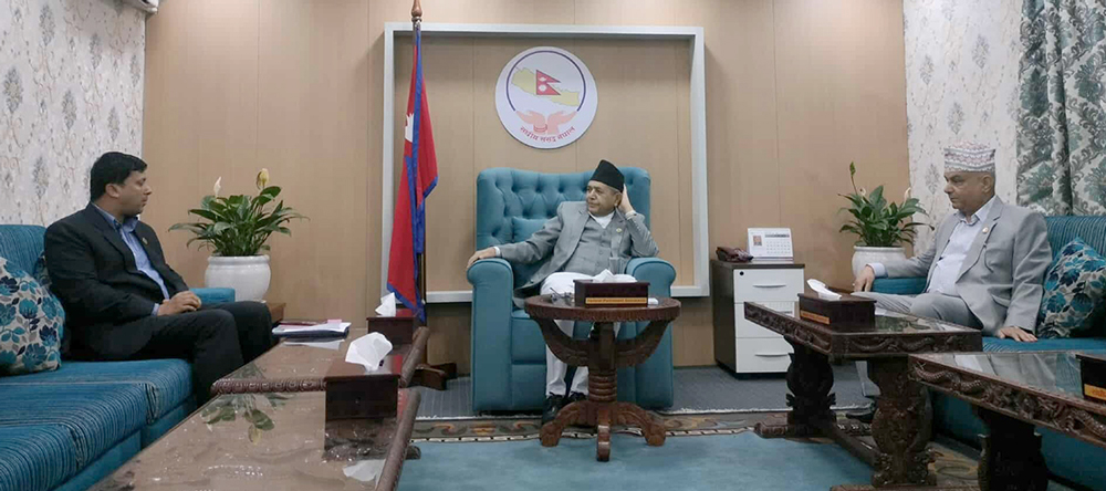 सभामुखले सिंहदरबारस्थित आफ्नै कार्यकक्षमा आइतबार नेपाली कांग्रेसका प्रमुख सचेतक श्यामकुमार घिमिरे, नेकपा एमाले प्रमुख सचेतक महेशकुमार बर्तौला र माओवादी केन्द्रका प्रमुख सचेतक हितराज पाण्डेसँग छलफल गरे ।