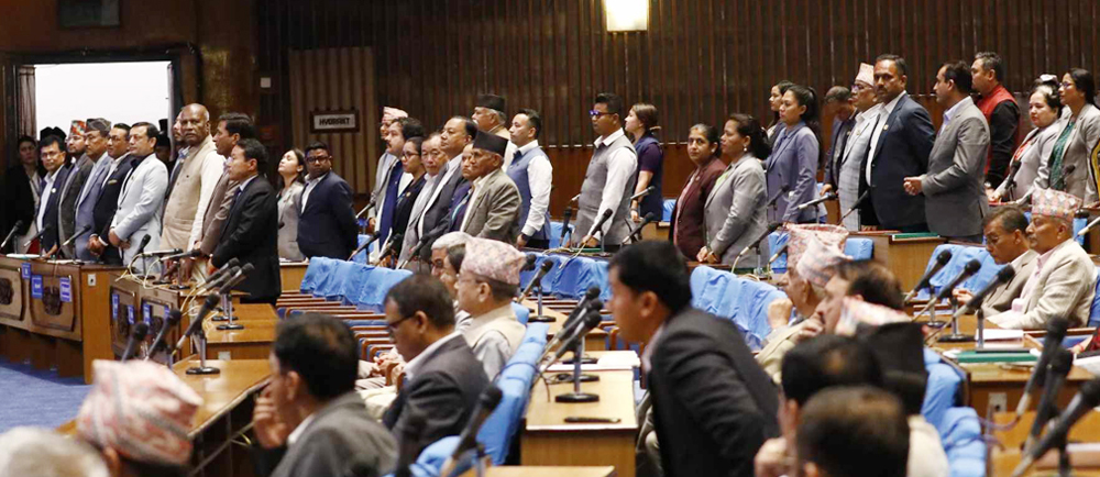 संसद् बैठक ५ मिनेटमै सकिएको छ । प्रतिनिधिसभाको बैठक सुरु हुनासाथ प्रमुख प्रतिपक्षमा रहेका सांसदहरु उठेर विरोध जनाएका थिए ।