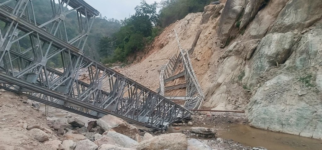 आज साँझ निर्माणाधीन बेलिब्रिज हिलिहाङ गाउँपालिकातर्फ टेकाउने क्रममा भाँचिएर खोलामा झरेको हो । करिब ७० मिटर लामो मोडुलार पुल भाँचिदा निर्माणमा खटिएका छजना कामदार घाइते भएका जिल्ला प्रहरी कार्यालयका प्रमुख प्रहरी नायब उपरीक्षक कौशलकुमार बुढाथोकीले जानकारी दिए ।