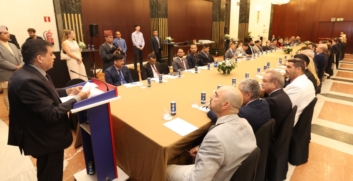 स्पेन वाणिज्य तथा उद्योग महाङ्घका सदस्य, व्यापारीक समुदायका अगुवा, नेपाली समुदायका प्रतिनिधि र कूटनीतिक व्यक्तित्व सहभागी कार्यक्रममा अध्यक्ष ढकालले नेपालको अर्थतन्त्रको मेरुदण्डका रूपमा रहेको पर्यटन उद्योगमा लगानी गरेमा प्रतिफल पाउन सहज हुने बताए ।