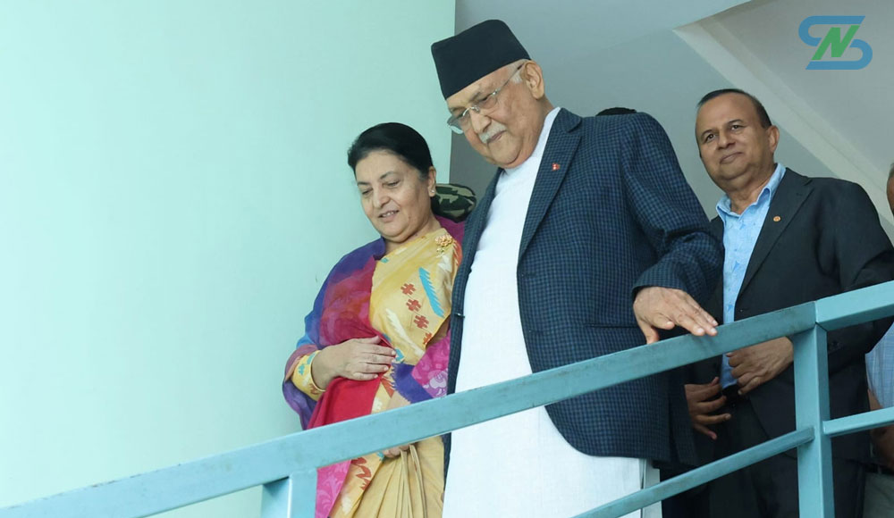 अपराह्न तीन बजे तय भएको भेटमा ओली पूर्वराष्ट्रपतिभन्दा आधा घण्टा ढिला पुगेका थिए। भेटअघि दुवैले पार्टीका अन्य शीर्ष नेताहरूको उपस्थितिमा मिडियाका लागि तस्बिर खिचाएका थिए ।