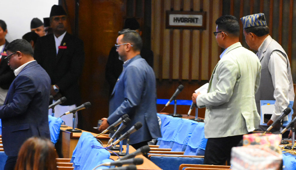 राष्ट्रिय स्वतन्त्र पार्टी (रास्वपा) र राष्ट्रिय प्रजातन्त्र पार्टी (राप्रपा) का सांसदहरूले आज पनि संसद् बैठक बहिष्कार गरेका छन् । बैठक सुरु हुने बित्तिकै सभामुखसँग समय लिएर आफ्ना कुरा राखेपछि उनीहरु बाहिरिएका हुन् ।