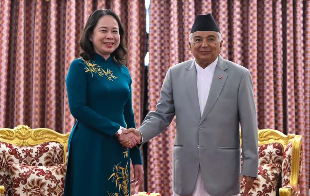 राष्ट्रपति रामचन्द्र पौडेलसँग नेपाल भ्रमणमा रहनुभएकी समाजवादी गणतन्त्र भियतनामका उपराष्ट्रपति वो थि आन्ह सुआनले आज शिष्टाचार भेट गरेकी छन् ।