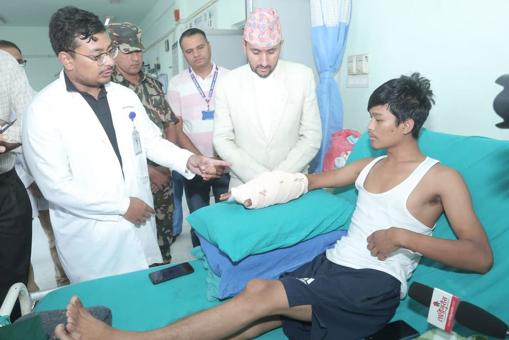 सञ्चार तथा सूचना प्रविधि मन्त्री जगदीश खरेलले जेनजी आन्दोलनका घाइतेहरुलाई भेटेका छन् । आज बिहान टिचिङ अस्पतालमा पुगेर उनले त्यहाँ उपचार गराइरहेका घाइतेहरुलाई भेटेर स्वास्थ्य अवस्थाको बारेमा जानकारी लिएका छन् ।