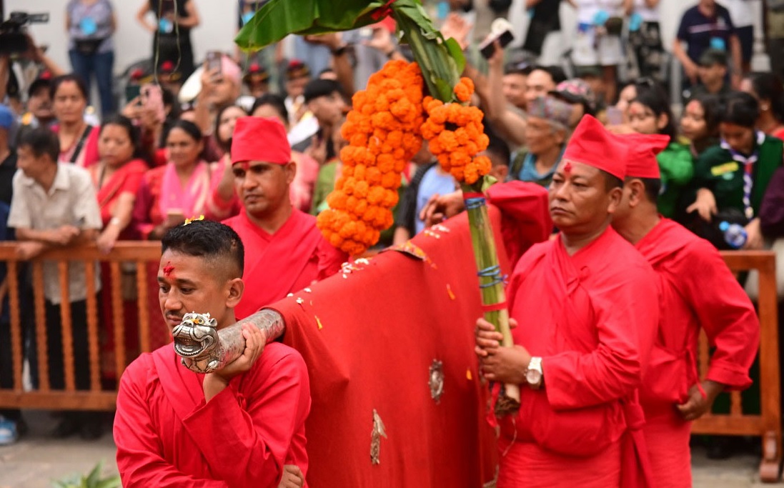 जमलबाट हनुमानढोकासम्म निजामती सेवाका उच्च पदस्थ अधिकारीहरू, नेपाली सेना गुर्जुको पल्टन, पञ्चेबाजा र सांस्कृतिक नाचगानसहित लावालस्करका साथमा फूलपाती ल्याइएको हो । फूलपाती भित्र्याउने कार्यक्रममा शार्दूलजङ्ग गुल्म, गुरुजुको पल्टन, सशस्त्र प्रहरीको समूह, मङ्गल धुन गाउने मङ्गलिनी समूहको पनि सहभागिता रहेको उनले बताए ।