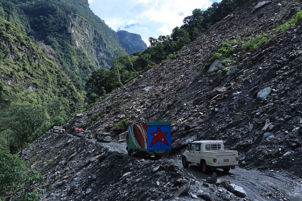 ‘सामान्य बर्षा हुनेवित्तिकै पहिरो खसेर सडक अवरुद्ध हुनुका साथै साँघुरो र हिलाम्मे सडकमा जोखिम मोलेर सवारी साधन वारपार गर्नुपर्ने अवस्था छ,’ उनले भने ‘सवारी साधन गुडिरहेको र यात्रु हिडिरहेको अवस्थामा माथिबाट ढुङ्गा खस्ने चोटपटक लाग्ने, क्षति पुग्ने गरेकाले सावधानी अपनाएर यातायात सञ्चालन गरेका छौ ।’