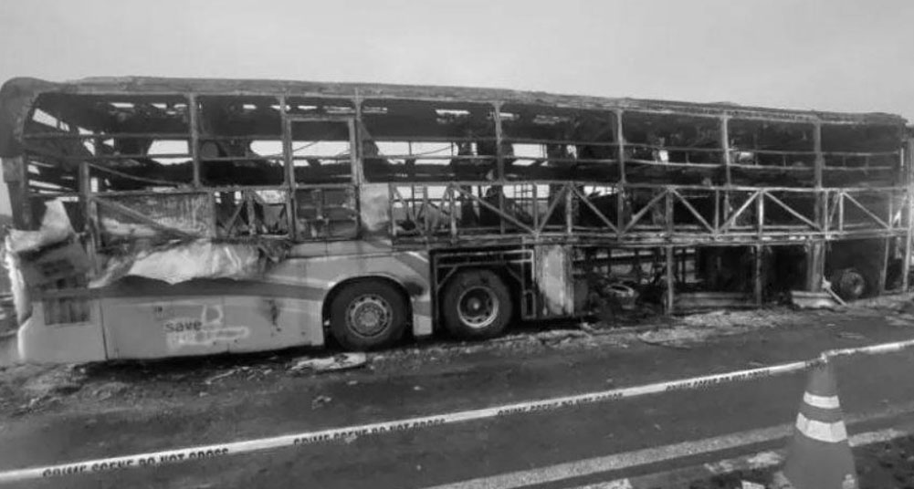 बीबीसी हिन्दीलेका अनुसार बस सुरुमा एक मोटरसाइकलसँग ठोक्किएपछि नियन्त्रण गुमाउँदै तेल ट्यांकरसँग ठोक्किएको थियो। त्यसपछि बसमा भीषण आगलागी भएको हो।