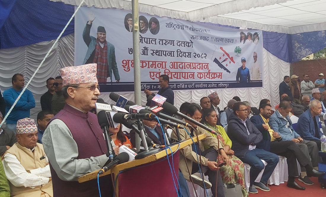 भ्रातृ संगठन नेपाल तरूण दलको ७३औँ स्थापना दिवसका अवसरमा सोमबार पार्टी केन्द्रीय कार्यालय, सानेपामा आयोजित समारोहमा उनले यस्तो बताएका हुन्।