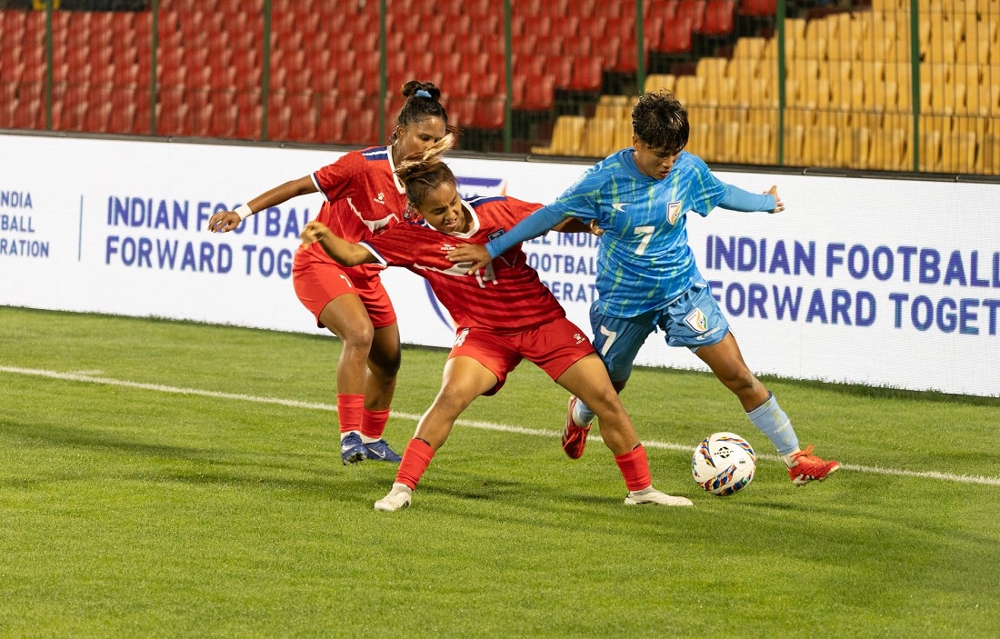 भारतको शिलोङस्थित जवाहरलाल नेहरु स्टेडियममा आज भएको खेलमा कप्तान सावित्रा भण्डारी (साम्बा)को दुई गोलमार्फत नेपालले भारतलाई २–१ ले पराजित गरेको हो ।