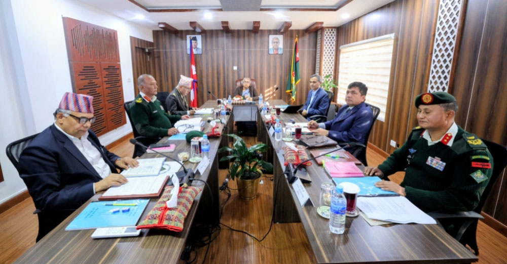 बैठकमा गृहमन्त्री ओमप्रकाश अर्याल, अर्थमन्त्री रामेश्वर खनाल, मुख्यसचिव एकनारायण अर्याल, प्रधानसेनापति अशोकराज सिग्देललगायतका सदस्यहरूको उपस्थिति रहेको छ ।