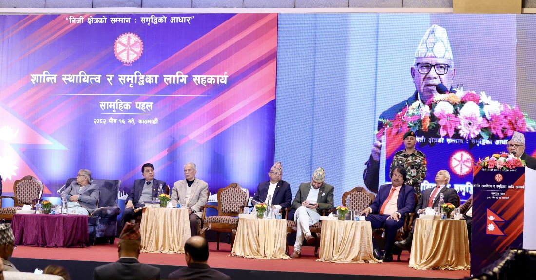 नेपाल उद्योग वाणिज्य महासङ्घद्वारा आज आयोजित सर्वपक्षीय संवाद कार्यक्रममा पूर्वप्रधानमन्त्रीसमेत रहेका नेपालले प्राकृतिक र विविध हिसाबले मुलुक सम्पन्न रहेकाले जनअपेक्षाअनुसार समृद्ध बनाउन संरचनागत क्षेत्रमा भएका त्रुटिलाई सच्याउँदै लाग्नुपर्ने बताए ।