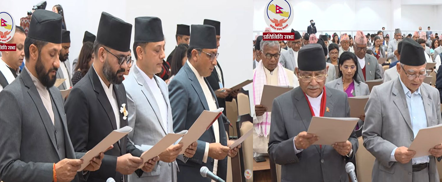 नवनिर्वाचित प्रतिनिधिसभा सदस्यहरुले पद तथा गोपनीयताको शपथग्रहण गरेका छन् । सिंहदरबारस्थित सङ्घीय संसद् सचिवालयको नवनिर्मित बहुउद्देश्यीय हलमा आज आयोजित समारोहमा प्रतिनिधिसभाका ज्येष्ठ सदस्य अर्जुननरसिंह केसीले उनीहरुलाई पद तथा गोपनीयताको शपथ गराएका हुन् ।