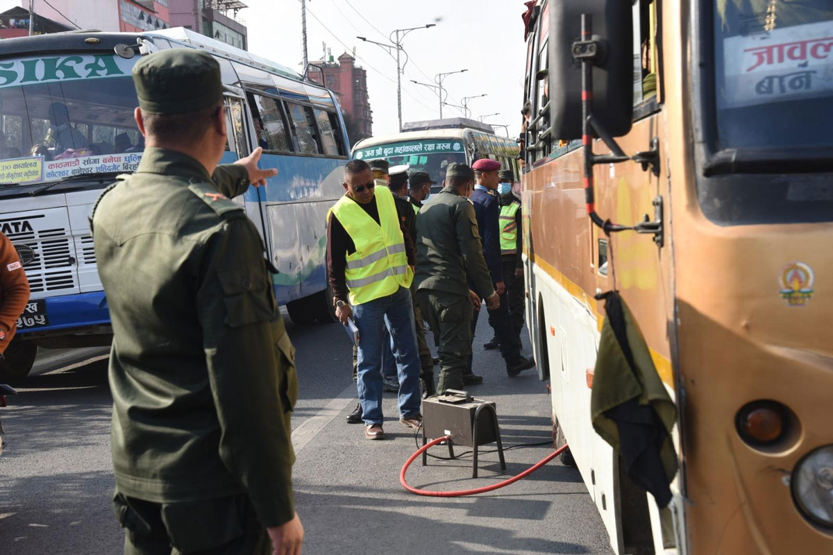 माघ २ गते जमल क्षेत्रमा २० वटाको जाँच गर्दा ६ वटा फेल थिए । पुस २९ गते बबरमहलमा २० वटा परीक्षण गर्दा ६ वटा फेल थिए । यसरी गरिएको परीक्षणमा मापदण्डबाहिर रहेका सवारीसाधनलाई मर्मत गर्न, त्यसपछि पुनः परीक्षण गराउन र मापदण्डभित्र मात्र सञ्चालन गर्न कबुलियतनामा गराइएको छ ।