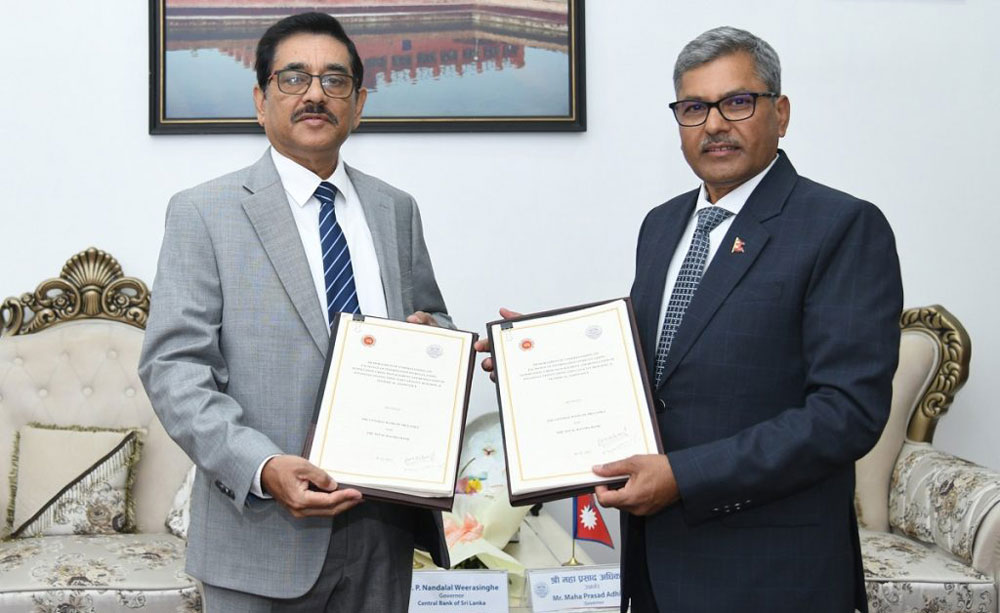 सम्झौतामा नेपाल राष्ट्र बैंककातर्फबाट गभर्नर महाप्रसाद अधिकारी र सेन्ट्रल बैंक अफ श्रीलंकाका तर्फबाट गभर्नर डा. नन्दलाल विरसिङ्घेले हस्ताक्षर गरेका हुन् ।